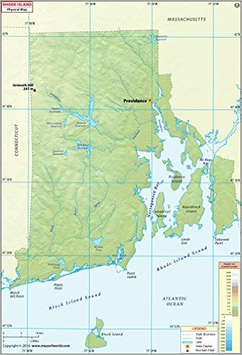 Amazon.: Rhode Island Physical Map (36" W x 52.98" H) : Office Physical Map of Rhode Island, satellite outside.